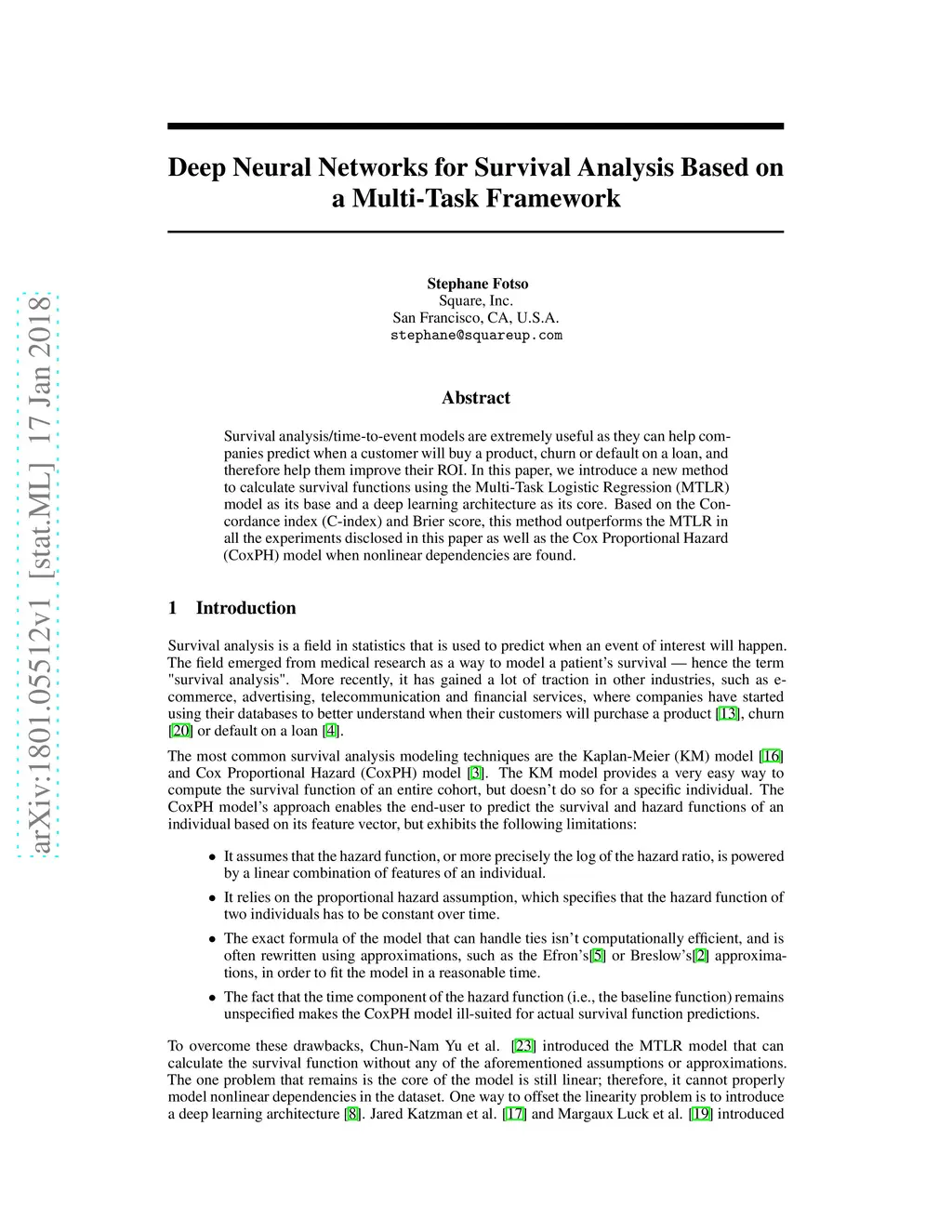 Deep Neural Networks for Survival Analysis Based on a Multi-Task