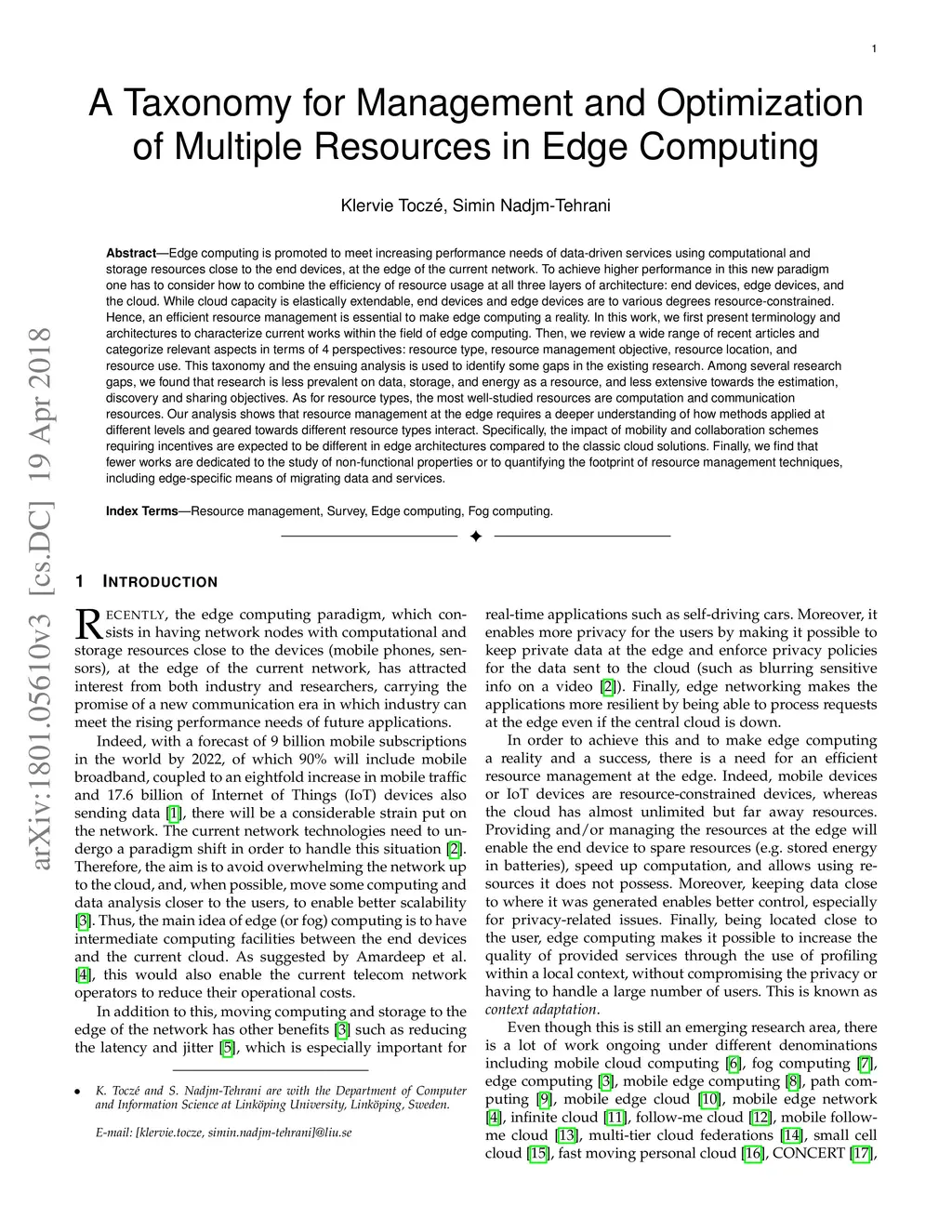 A Taxonomy for Management and Optimization of Multiple Resources in Edge