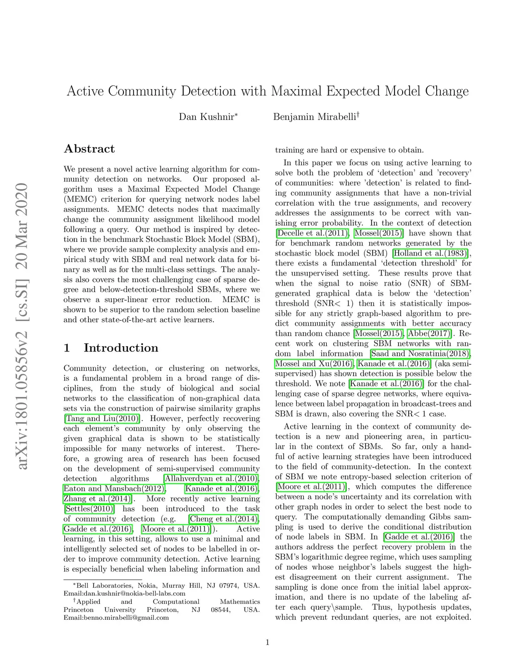 We present a novel active learning algorithm for community detection on networks. Our proposed algorithm uses a Maximal Expected Model Change (MEMC) criterion for querying network nodes label assignments. MEMC detects nodes that maximally change the community assignment likelihood model following a query. Our method is inspired by detection in the benchmark Stochastic Block Model (SBM), where we provide sample complexity analysis and empirical study with SBM and real network data for binary as well as for the multi-class settings. The analysis also covers the most challenging case of sparse degree and below-detection-threshold SBMs, where we observe a super-linear error reduction. MEMC is shown to be superior to the random selection baseline and other state-of-the-art active learners.