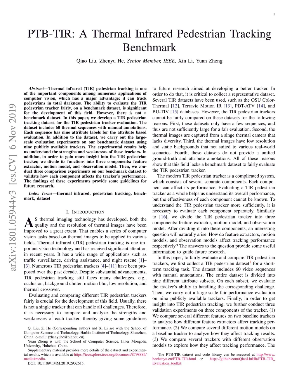 PTB-TIR: A Thermal Infrared Pedestrian Tracking Benchmark