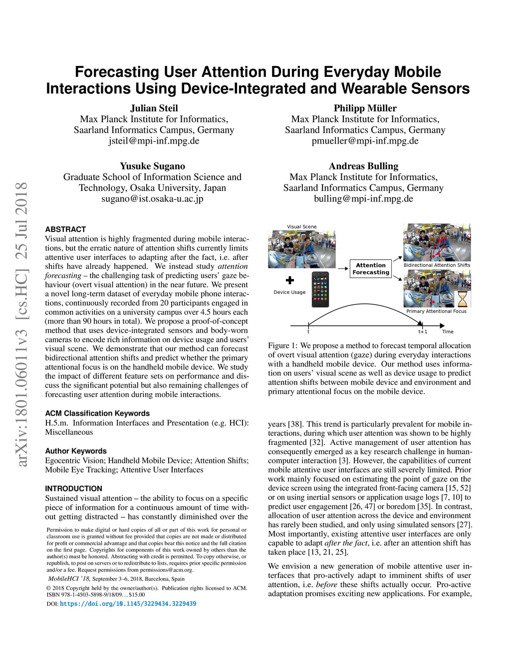 Forecasting User Attention During Everyday Mobile Interactions Using Device-Integrated and Wearable Sensors