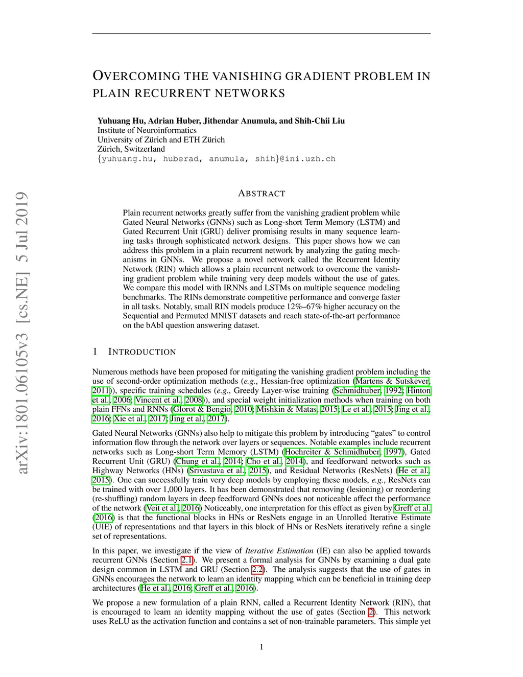 Overcoming the vanishing gradient problem in plain recurrent networks