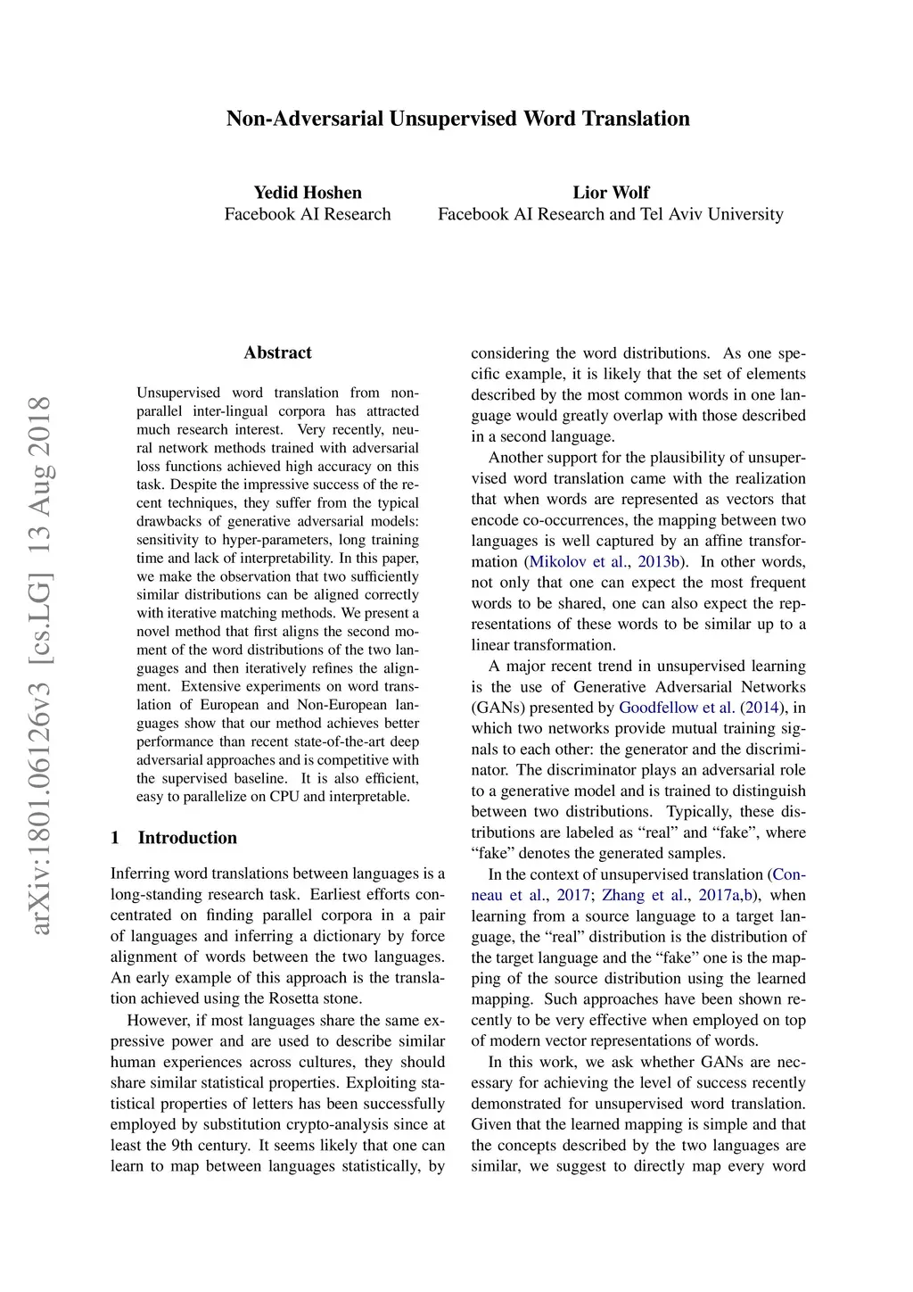 Unsupervised word translation from non-parallel inter-lingual corpora has attracted much research interest. Very recently, neural network methods trained with adversarial loss functions achieved high accuracy on this task. Despite the impressive success of the recent techniques, they suffer from the typical drawbacks of generative adversarial models: sensitivity to hyper-parameters, long training time and lack of interpretability. In this paper, we make the observation that two sufficiently similar distributions can be aligned correctly with iterative matching methods. We present a novel method that first aligns the second moment of the word distributions of the two languages and then iteratively refines the alignment. Our simple linear method is able to achieve better performance than recent state-of-the-art deep adversarial approaches and is competitive with the supervised baseline. Our method is also efficient, easy to parallelize on CPU and interpretable.
