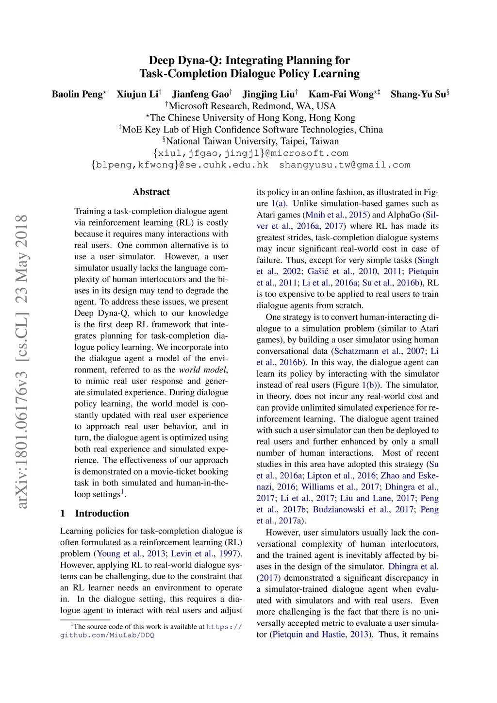 Deep Dyna-Q: Integrating Planning for Task-Completion Dialogue Policy