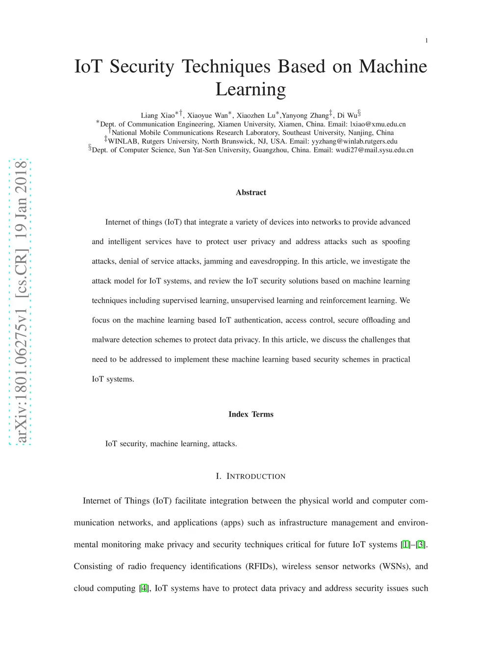 IoT Security Techniques Based on Machine Learning