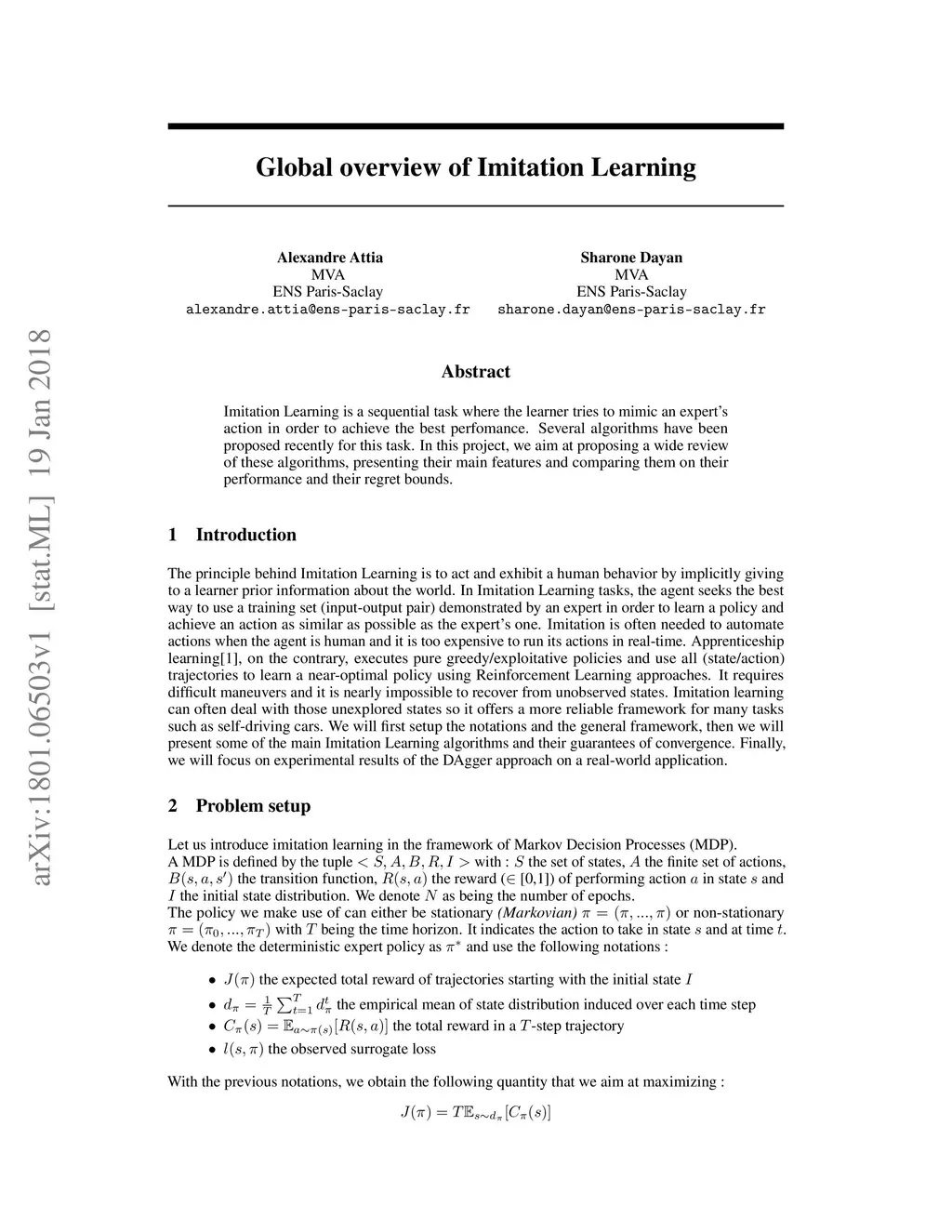 Global overview of Imitation Learning
