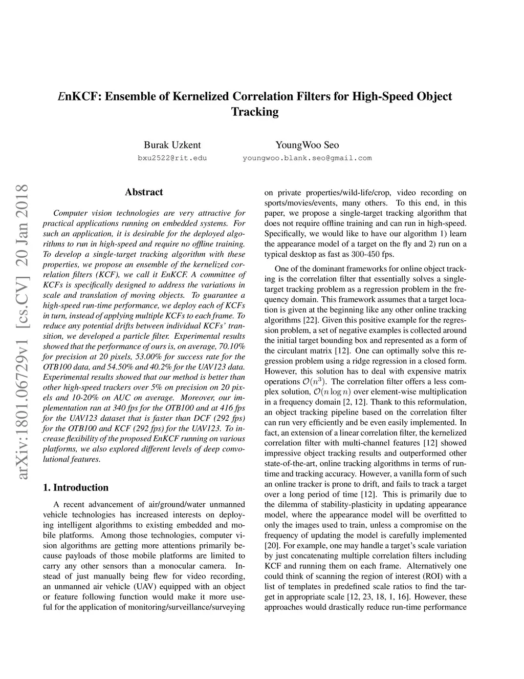 EnKCF: Ensemble of Kernelized Correlation Filters for High-Speed Object