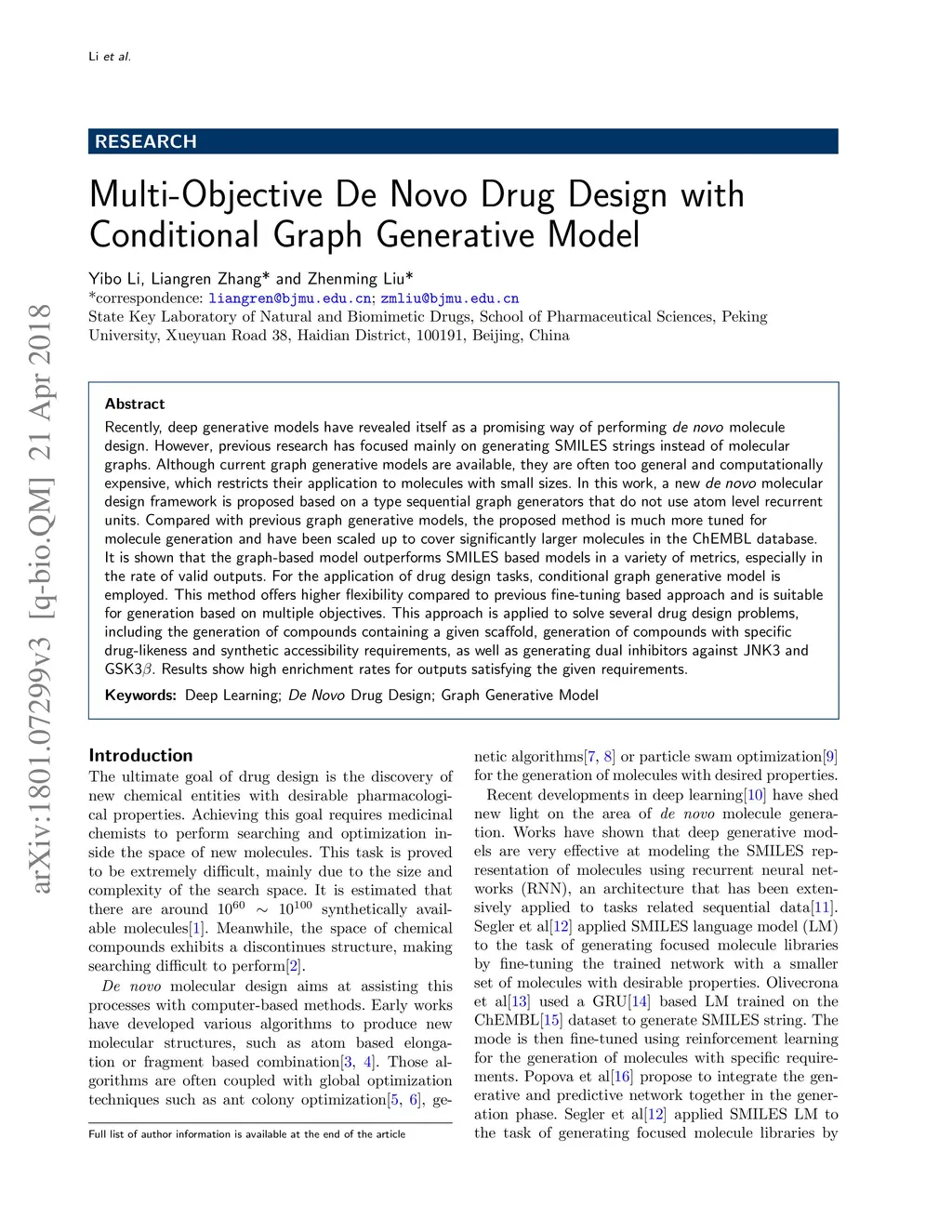 Multi-Objective De Novo Drug Design with Conditional Graph Generative