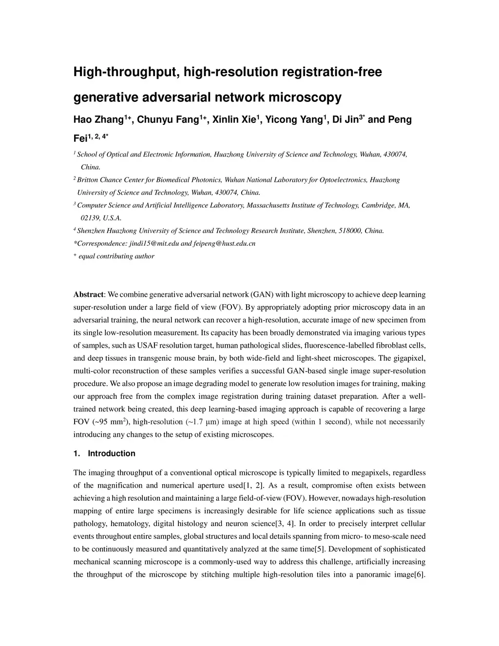 High-throughput, high-resolution registration-free generated adversarial