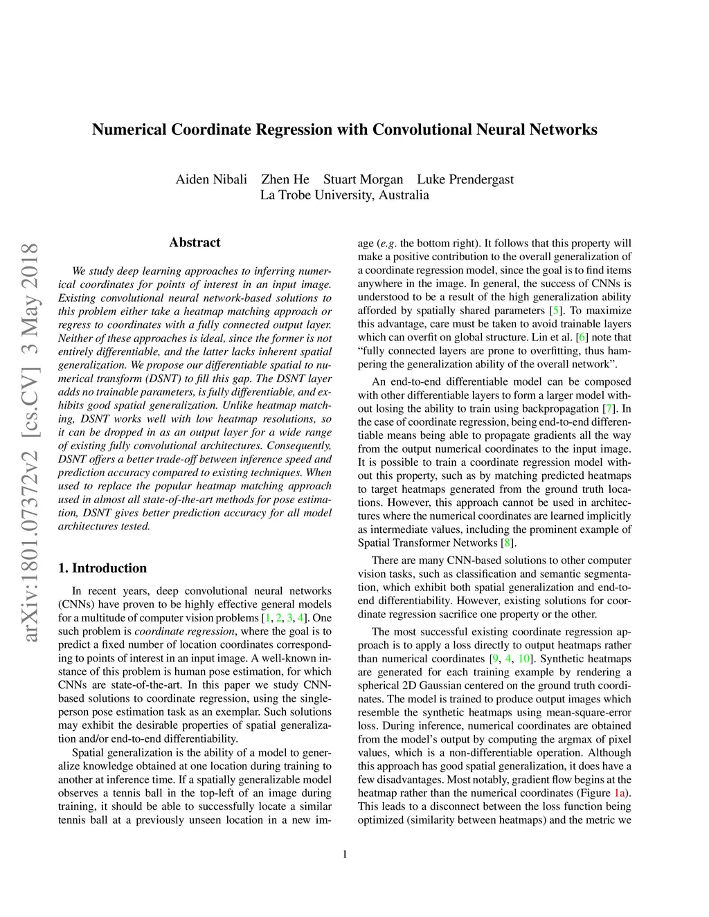 Numerical Coordinate Regression with Convolutional Neural Networks
