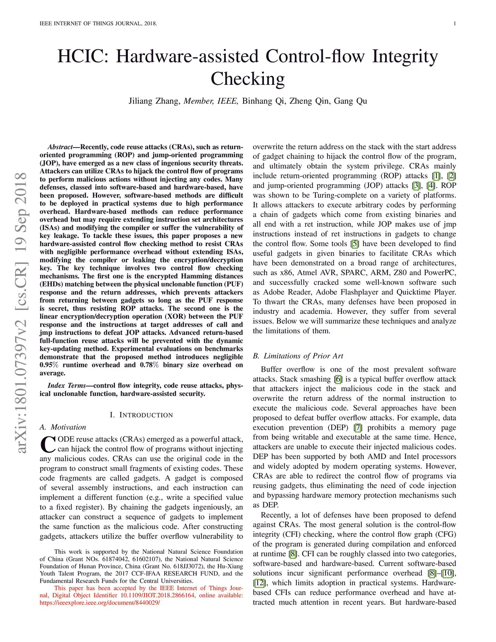 HCIC: Hardware-assisted Control-flow Integrity Checking