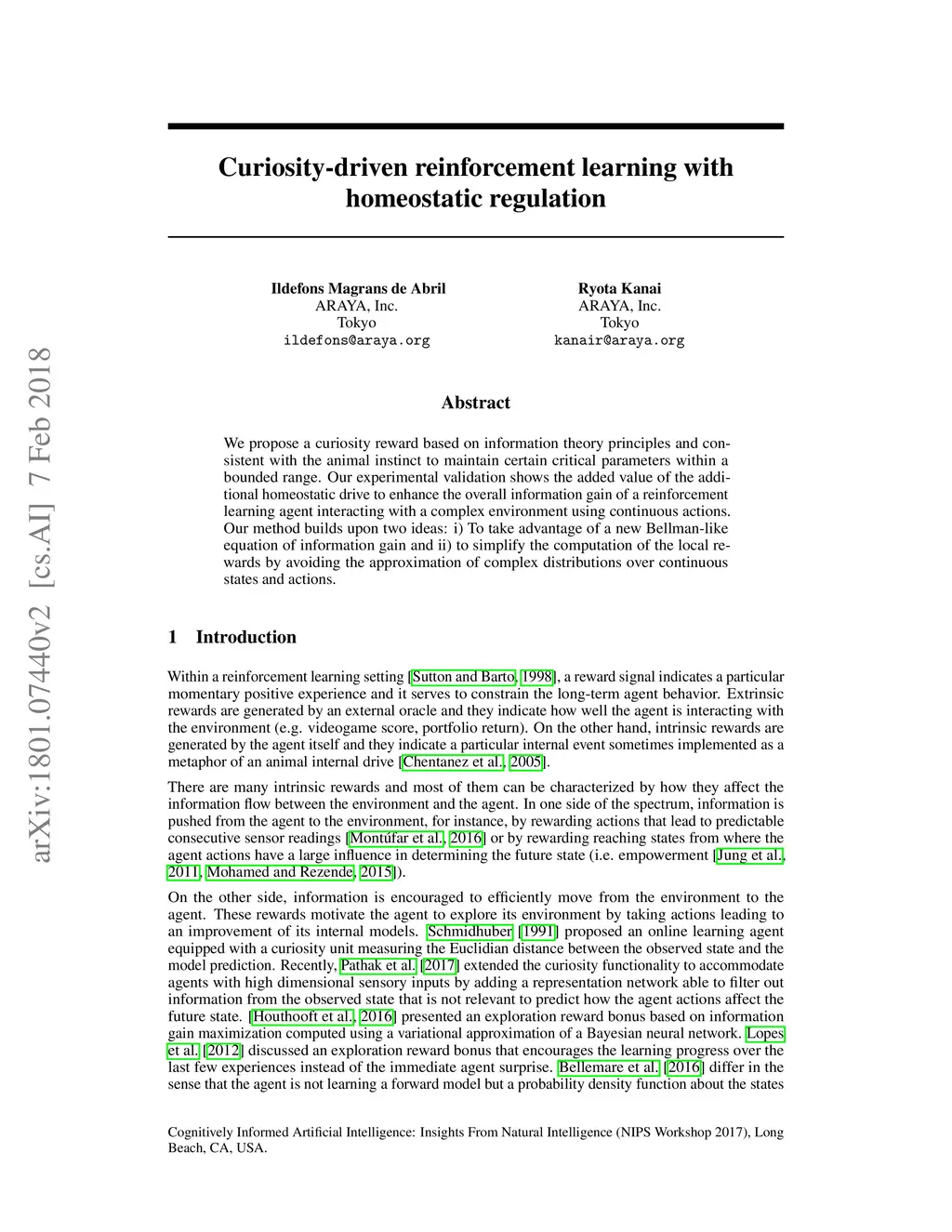 Curiosity-driven reinforcement learning with homeostatic regulation
