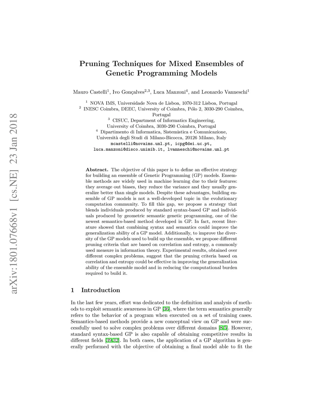 Pruning Techniques for Mixed Ensembles of Genetic Programming Models
