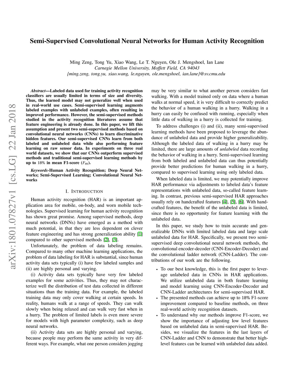 Semi-Supervised Convolutional Neural Networks for Human Activity