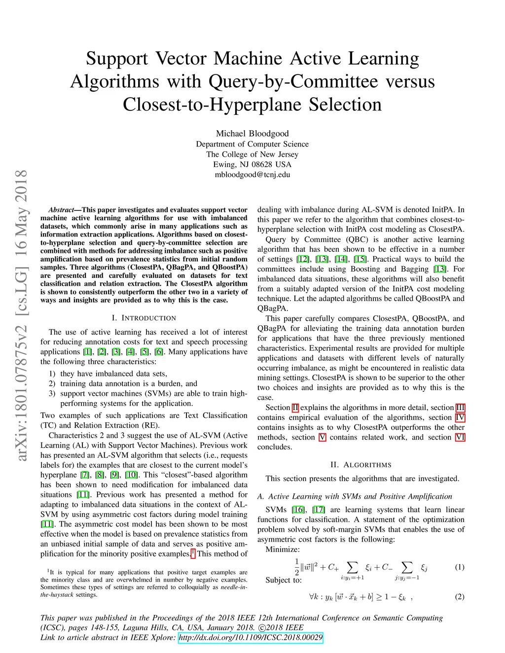Support Vector Machine Active Learning Algorithms with