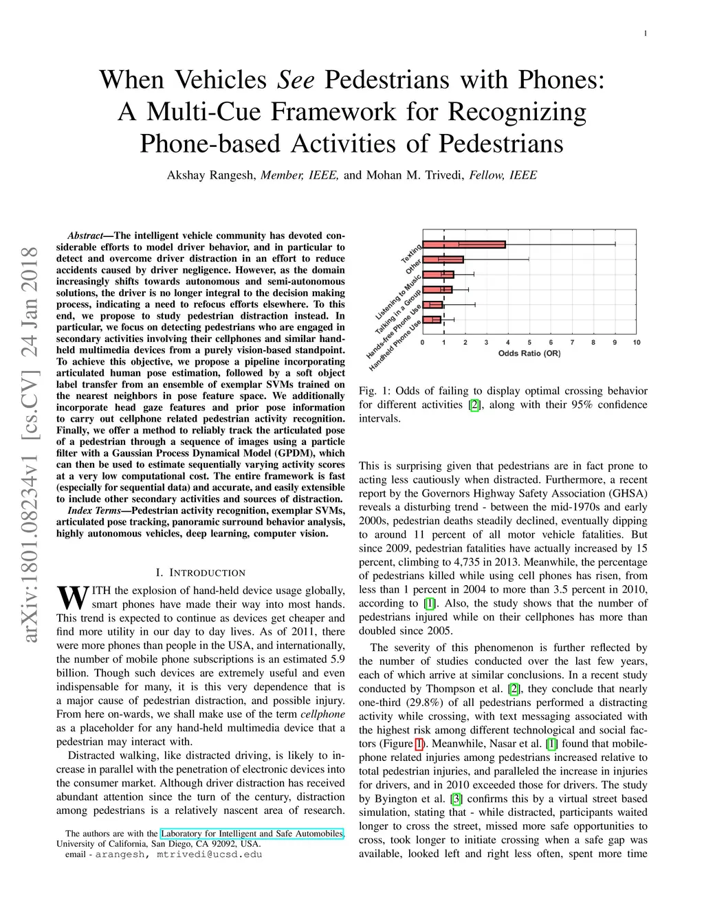 When Vehicles See Pedestrians with Phones:A Multi-Cue Framework for