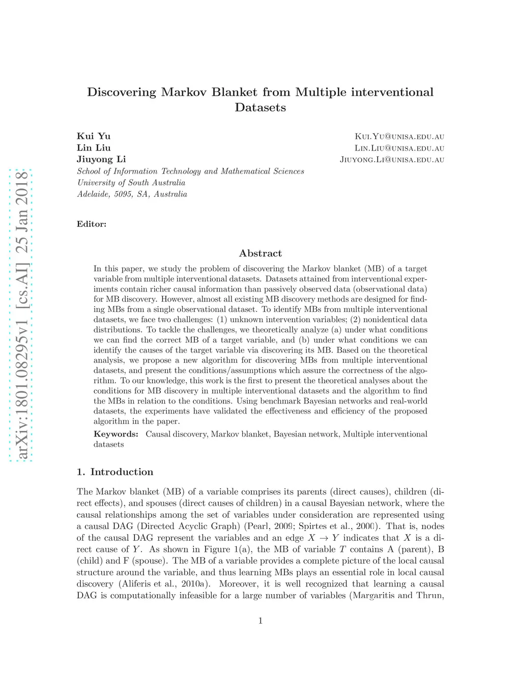 Discovering Markov Blanket from Multiple interventional Datasets