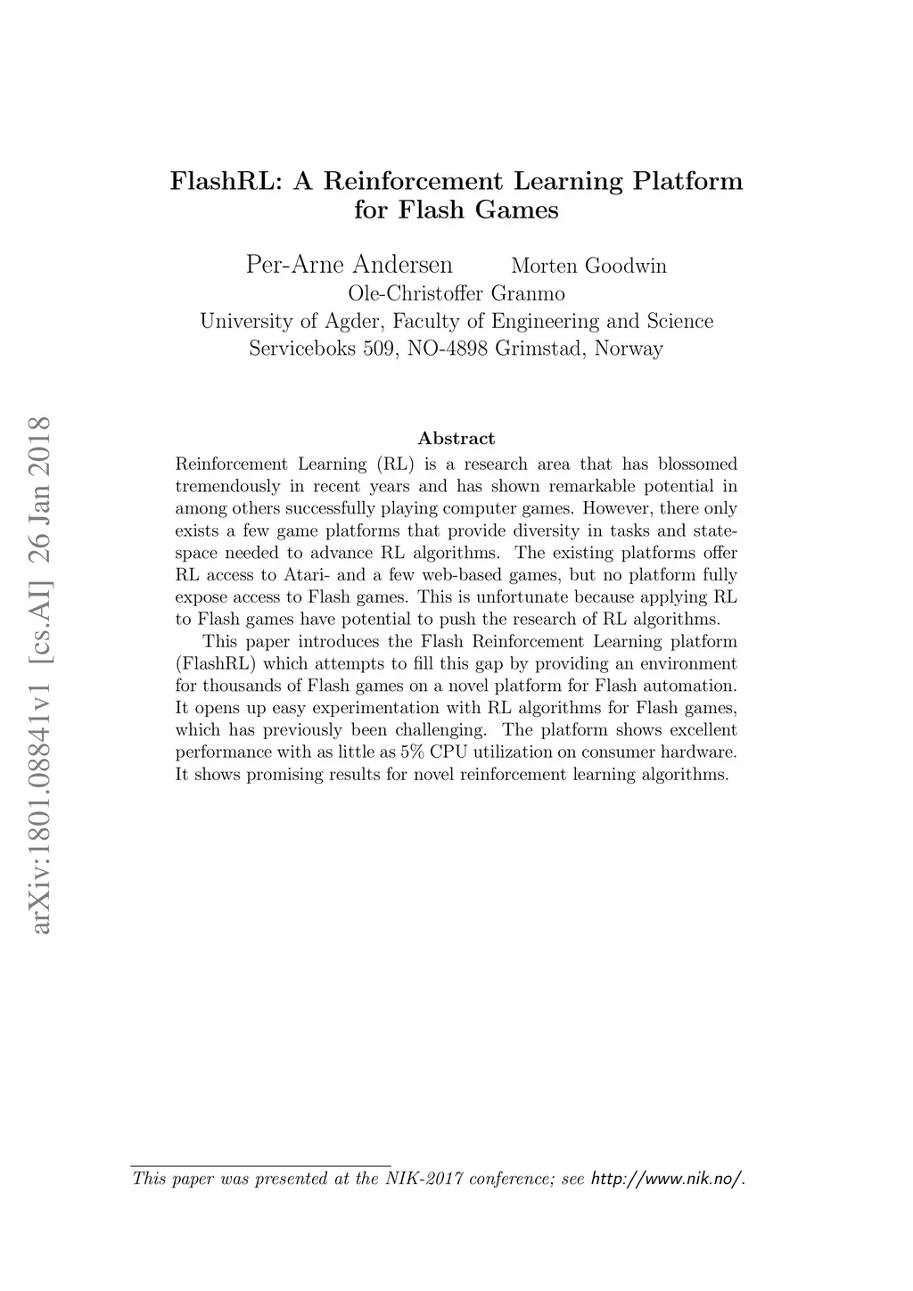 FlashRL: A Reinforcement Learning Platform for Flash Games