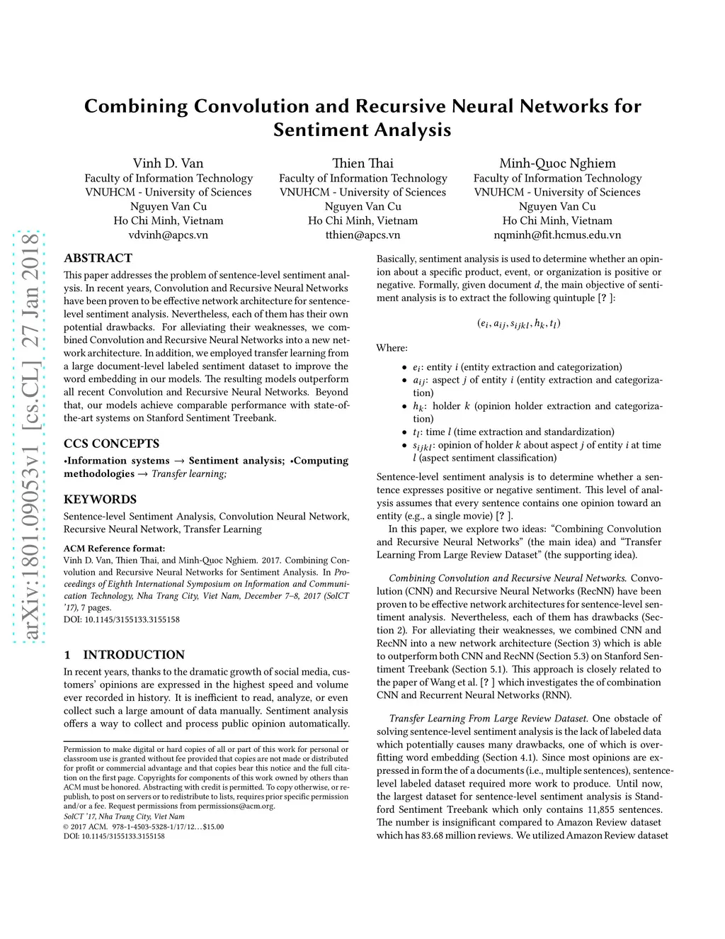 This paper addresses the problem of sentence-level sentiment analysis. In recent years, Convolution and Recursive Neural Networks have been proven to be effective network architecture for sentence-level sentiment analysis. Nevertheless, each of them has their own potential drawbacks. For alleviating their weaknesses, we combined Convolution and Recursive Neural Networks into a new network architecture. In addition, we employed transfer learning from a large document-level labeled sentiment dataset to improve the word embedding in our models. The resulting models outperform all recent Convolution and Recursive Neural Networks. Beyond that, our models achieve comparable performance with state-of-the-art systems on Stanford Sentiment Treebank.