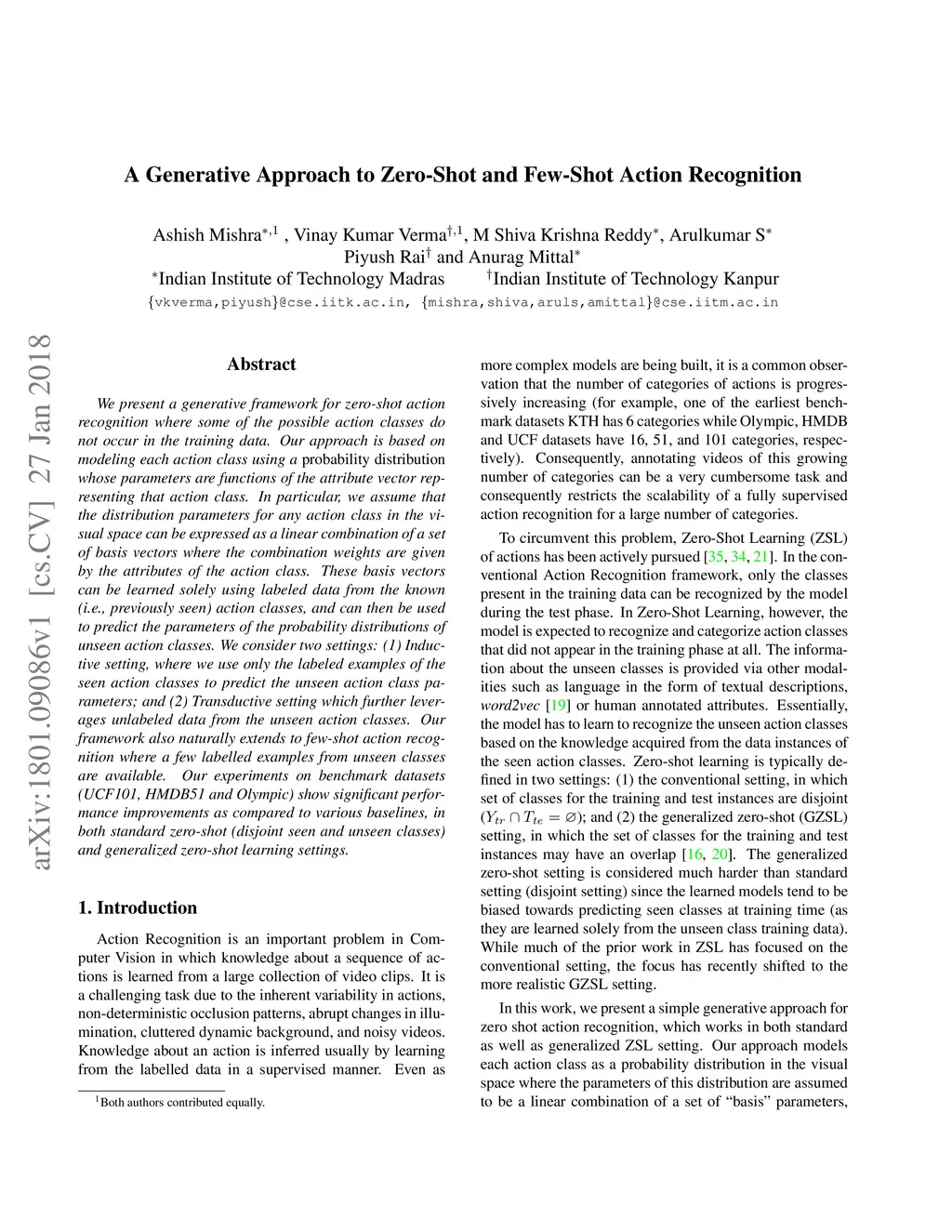 A Generative Approach to Zero-Shot and Few-Shot Action Recognition
