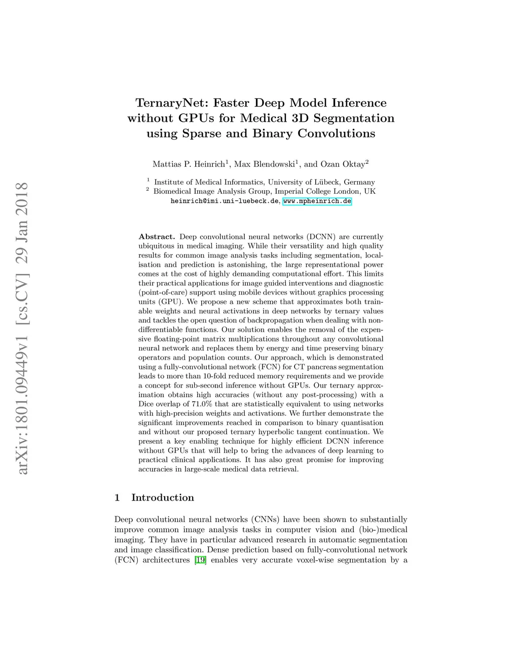 TernaryNet: Faster Deep Model Inference without GPUs for Medical 3D