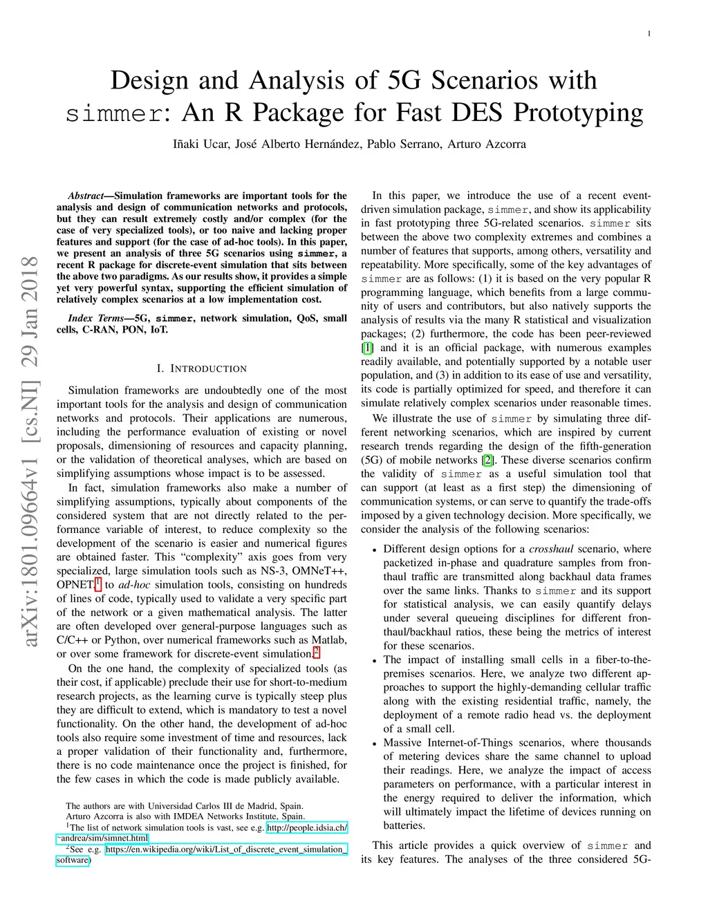 Design and Analysis of 5G Scenarios with 'simmer': An R Package for Fast
