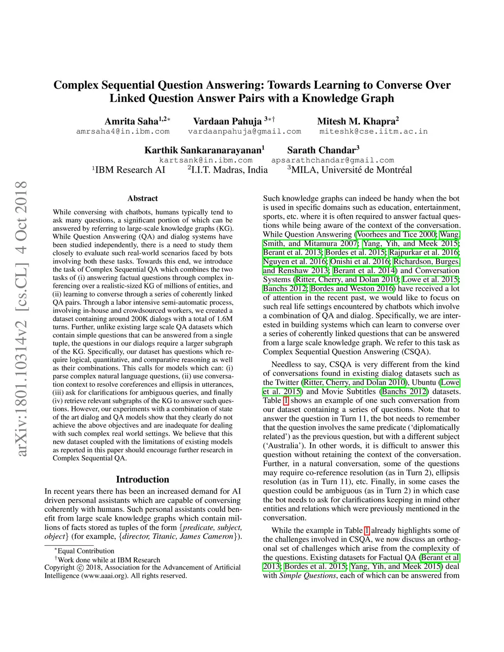 Complex Sequential Question Answering: Towards Learning to Converse Over