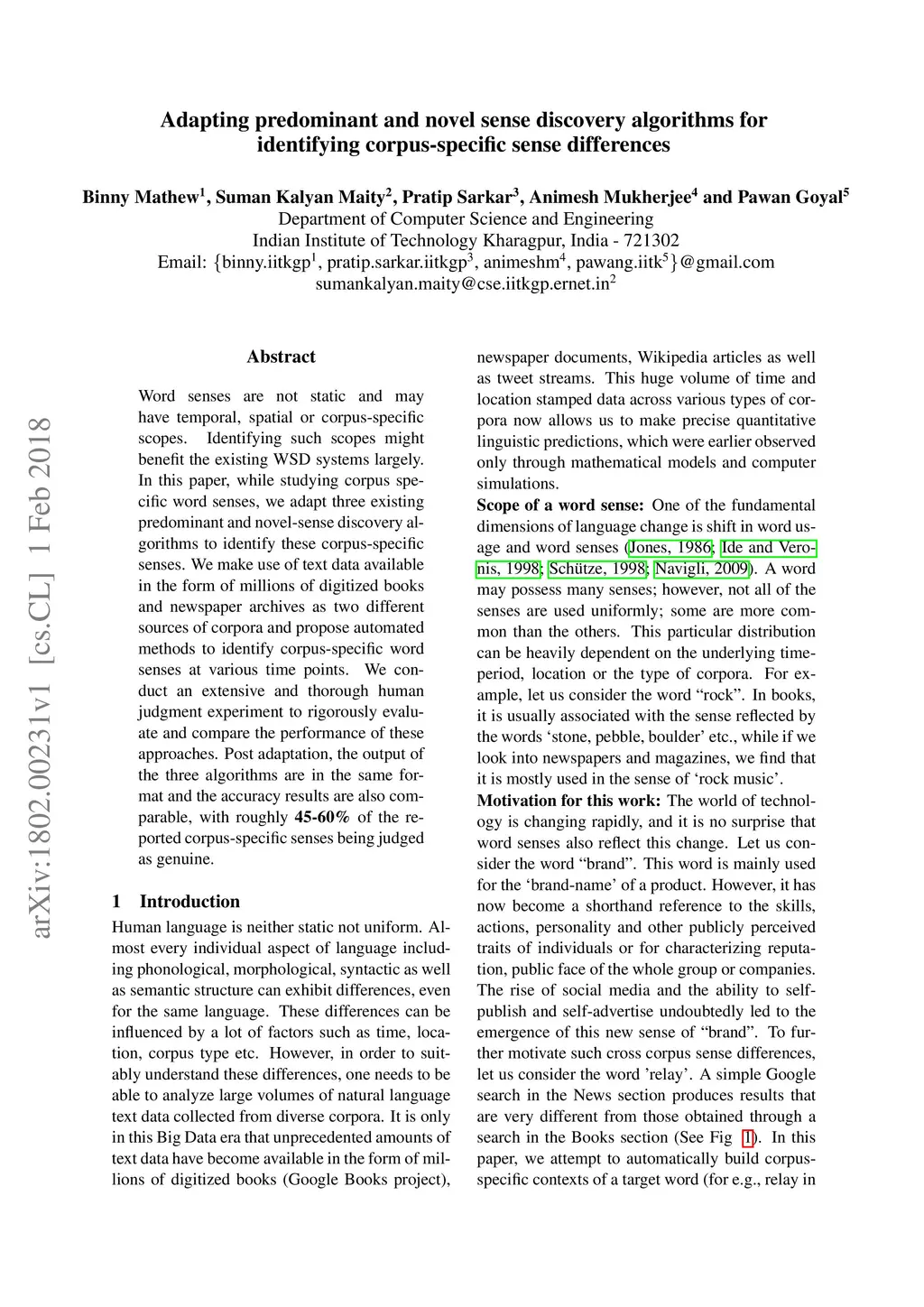 Word senses are not static and may have temporal, spatial or corpus-specific scopes. Identifying such scopes might benefit the existing WSD systems largely. In this paper, while studying corpus specific word senses, we adapt three existing predominant and novel-sense discovery algorithms to identify these corpus-specific senses. We make use of text data available in the form of millions of digitized books and newspaper archives as two different sources of corpora and propose automated methods to identify corpus-specific word senses at various time points. We conduct an extensive and thorough human judgment experiment to rigorously evaluate and compare the performance of these approaches. Post adaptation, the output of the three algorithms are in the same format and the accuracy results are also comparable, with roughly 45-60% of the reported corpus-specific senses being judged as genuine.
