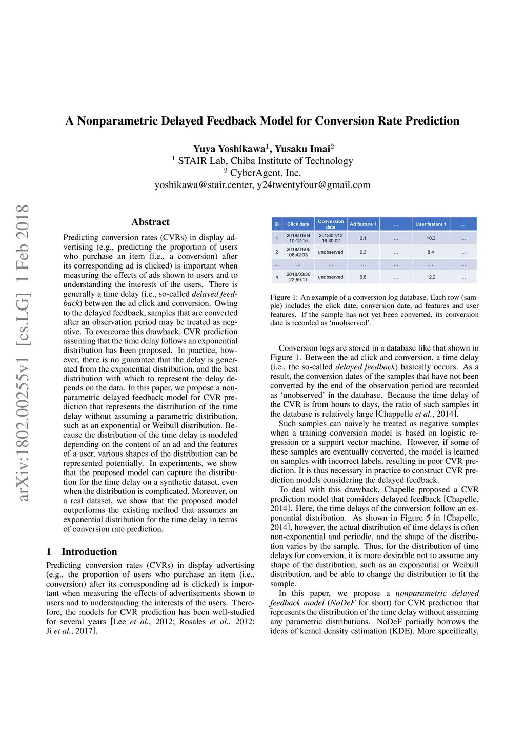 A Nonparametric Delayed Feedback Model for Conversion Rate Prediction