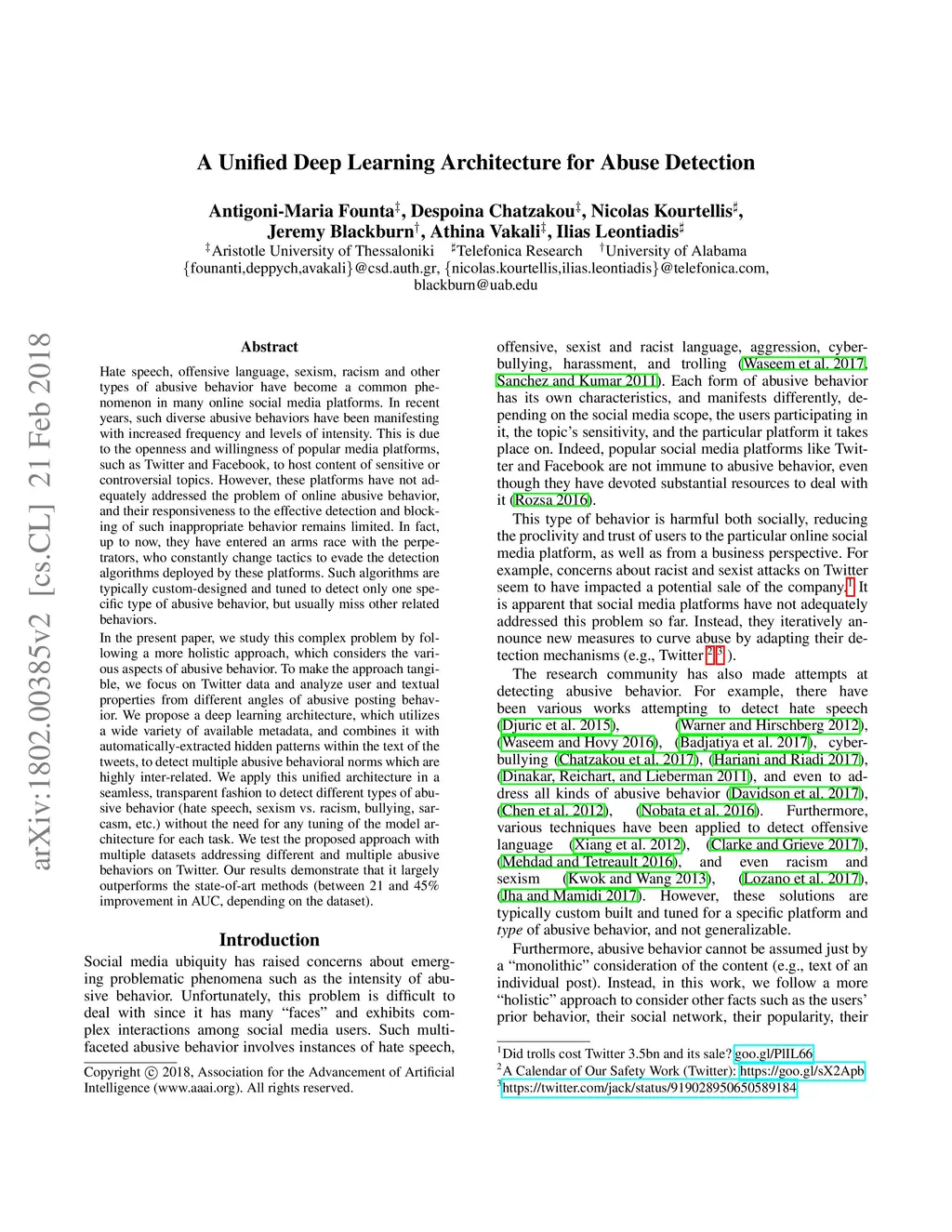 A Unified Deep Learning Architecture for Abuse Detection