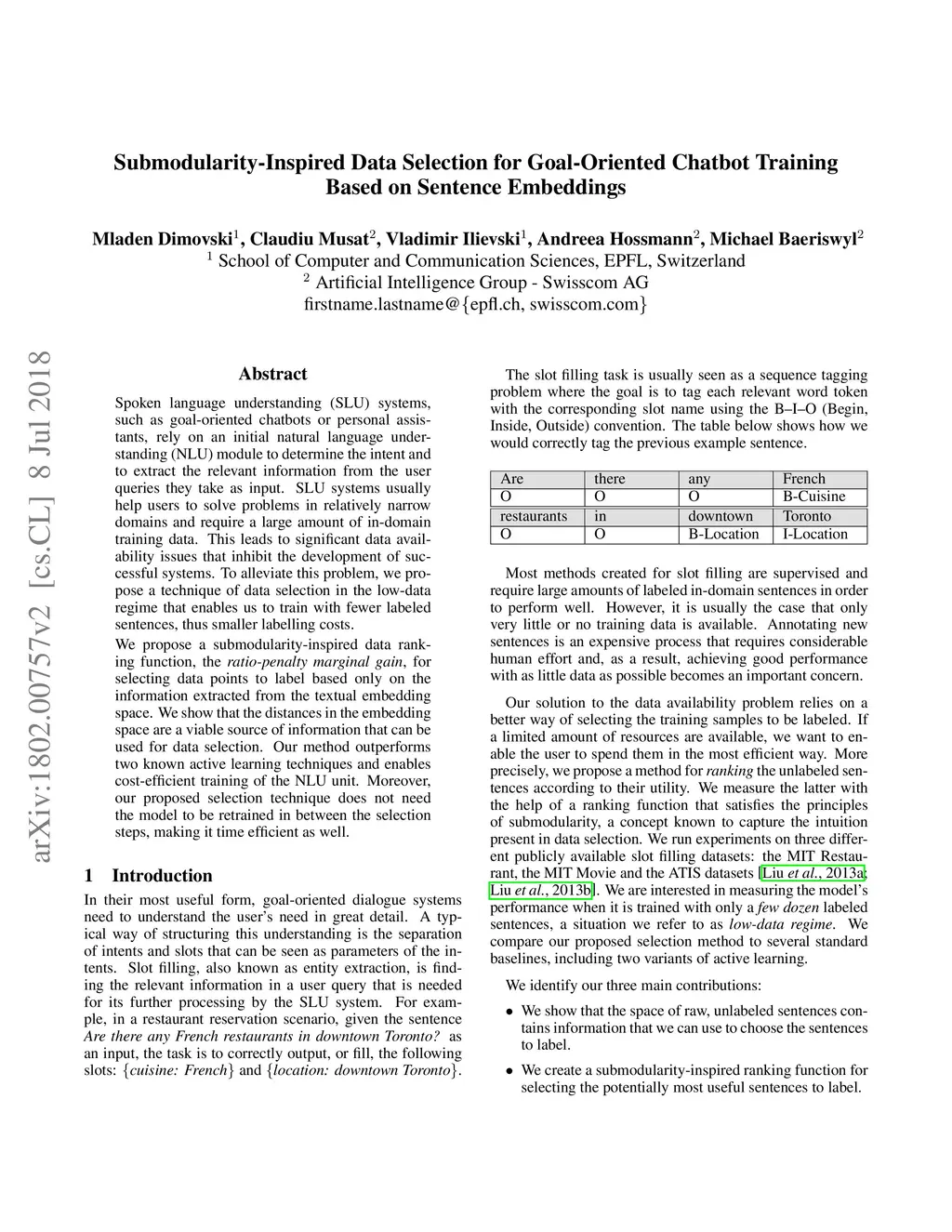 Submodularity-Inspired Data Selection for Goal-Oriented Chatbot Training