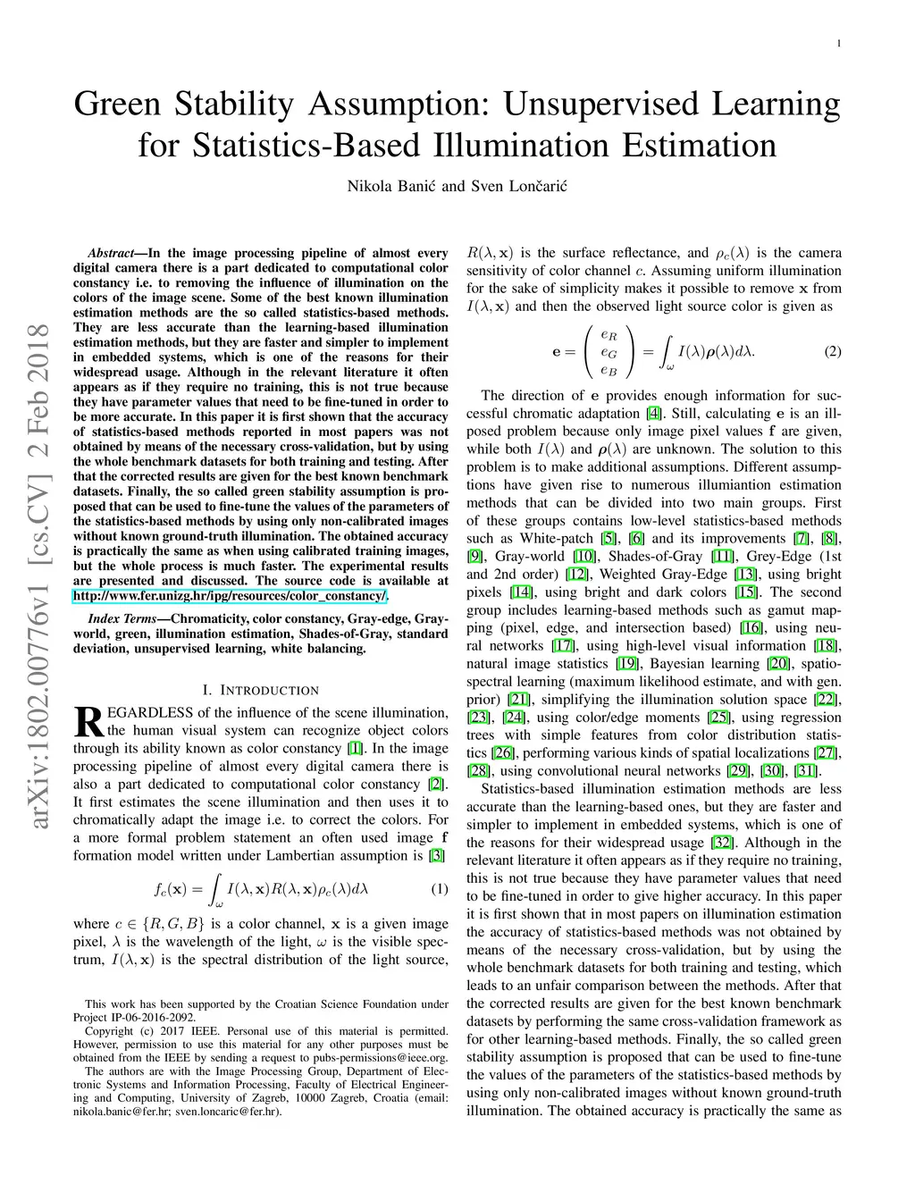 Green Stability Assumption: Unsupervised Learning for Statistics-Based