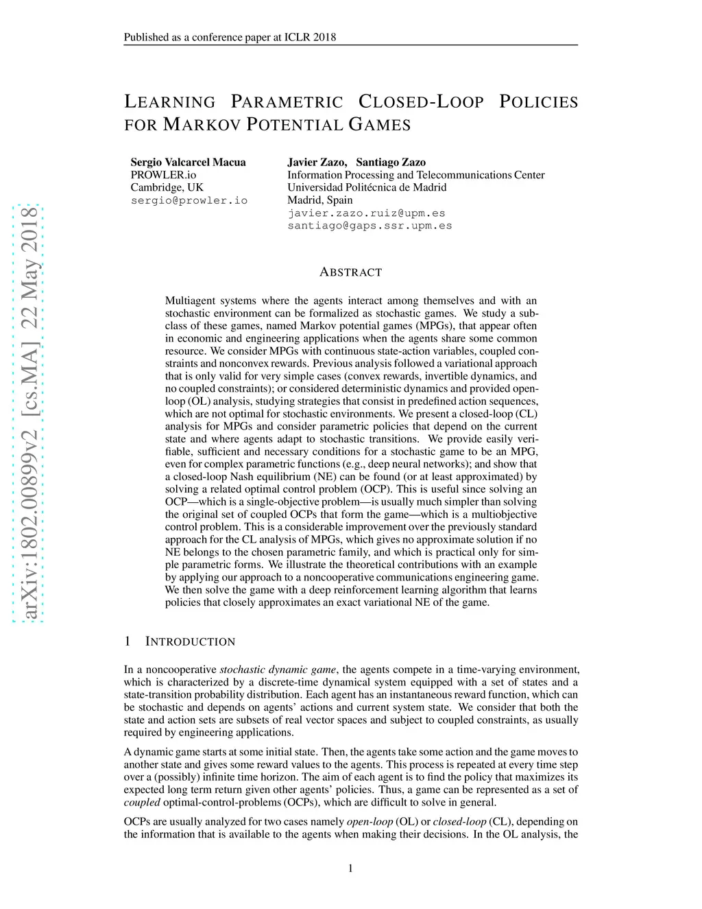 Learning Parametric Closed-Loop Policies for Markov Potential Games
