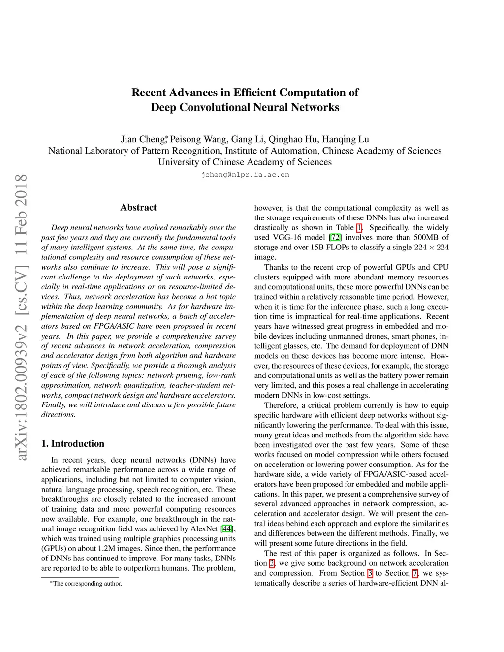 Recent Advances in Efficient Computation of Deep Convolutional Neural