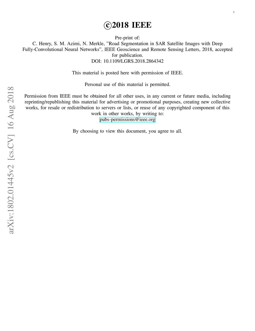 Road Segmentation in SAR Satellite Images with Deep Fully-Convolutional