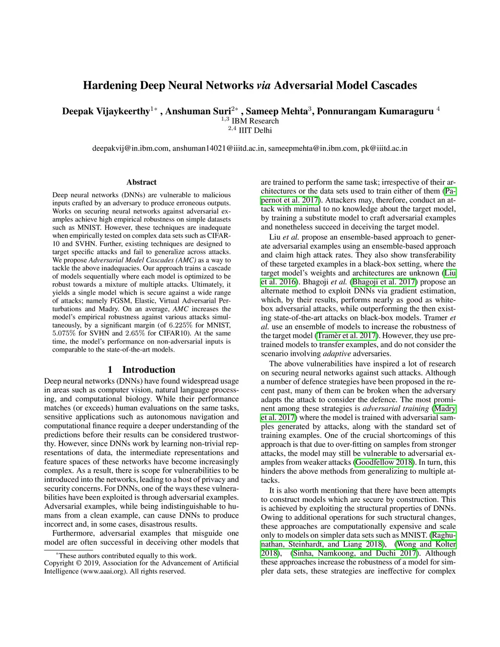 Hardening Deep Neural Networks via Adversarial Model Cascades