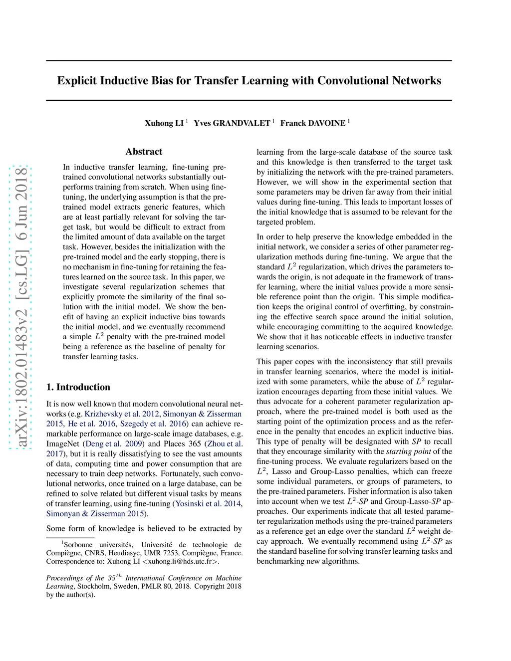 Explicit Inductive Bias for Transfer Learning with Convolutional