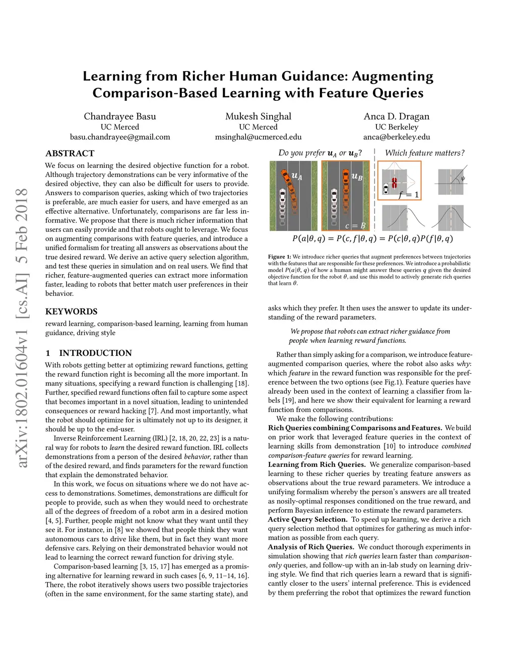 We focus on learning the desired objective function for a robot. Although trajectory demonstrations can be very informative of the desired objective, they can also be difficult for users to provide. Answers to comparison queries, asking which of two trajectories is preferable, are much easier for users, and have emerged as an effective alternative. Unfortunately, comparisons are far less informative. We propose that there is much richer information that users can easily provide and that robots ought to leverage. We focus on augmenting comparisons with feature queries, and introduce a unified formalism for treating all answers as observations about the true desired reward. We derive an active query selection algorithm, and test these queries in simulation and on real users. We find that richer, feature-augmented queries can extract more information faster, leading to robots that better match user preferences in their behavior.