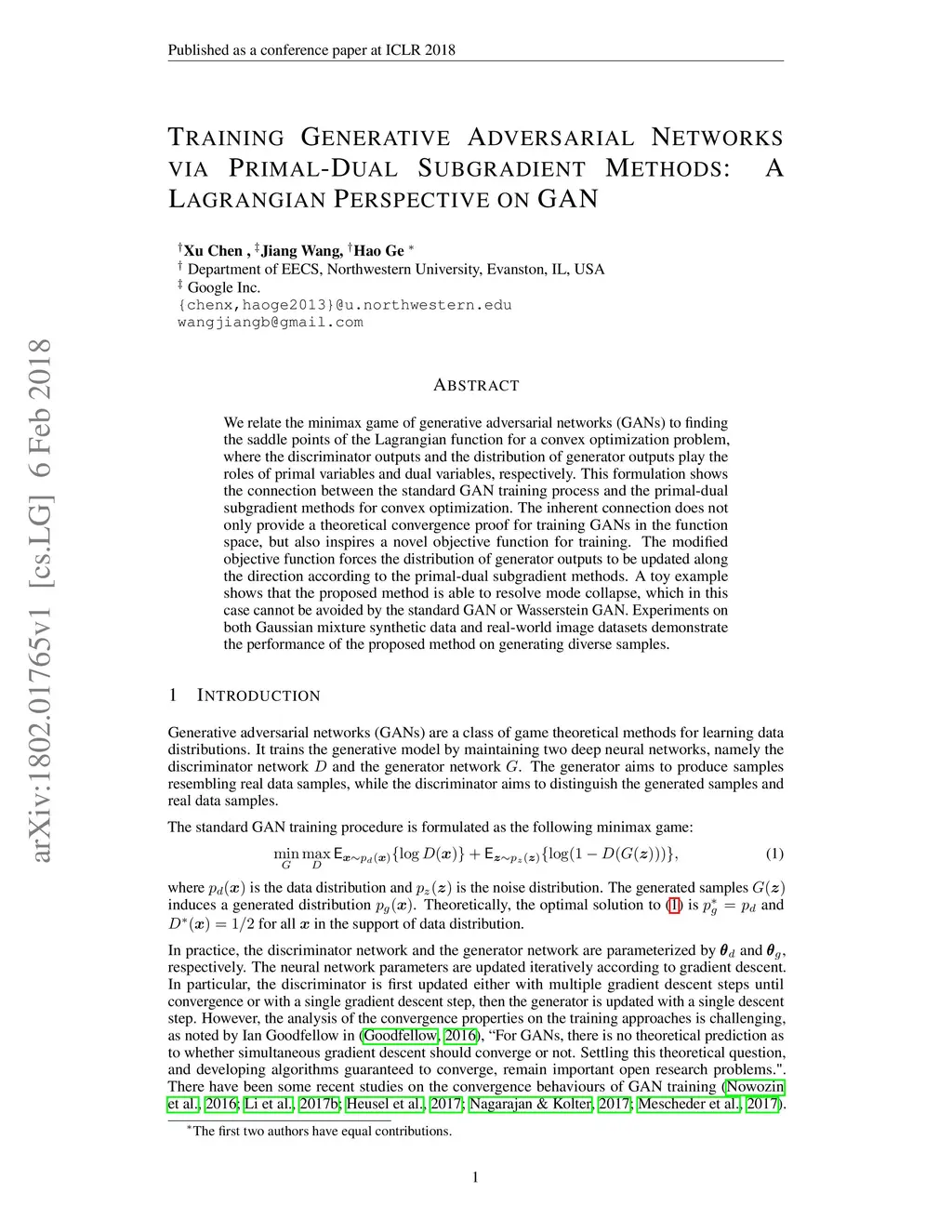 Training Generative Adversarial Networks via Primal-Dual Subgradient