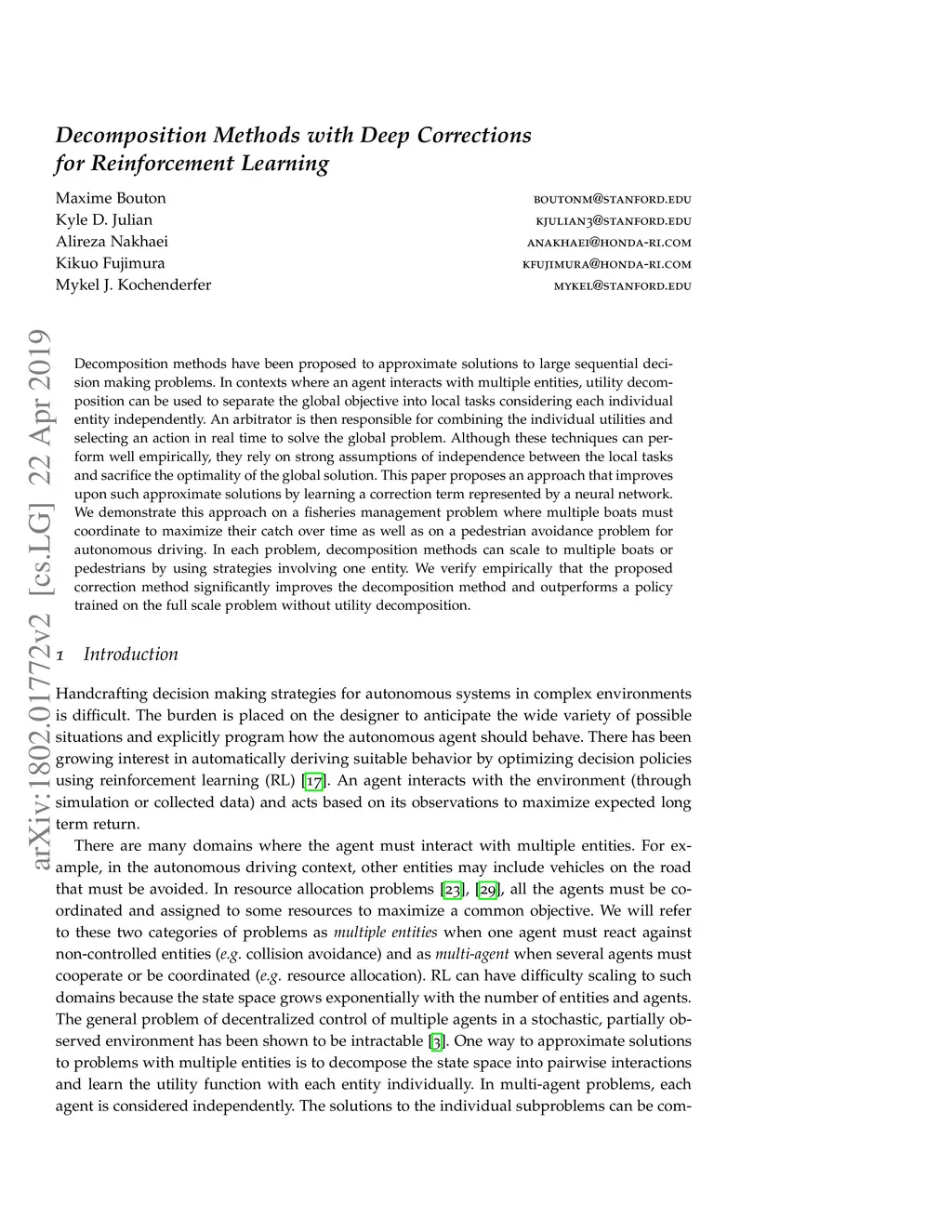 Decomposition Methods with Deep Corrections for Reinforcement Learning