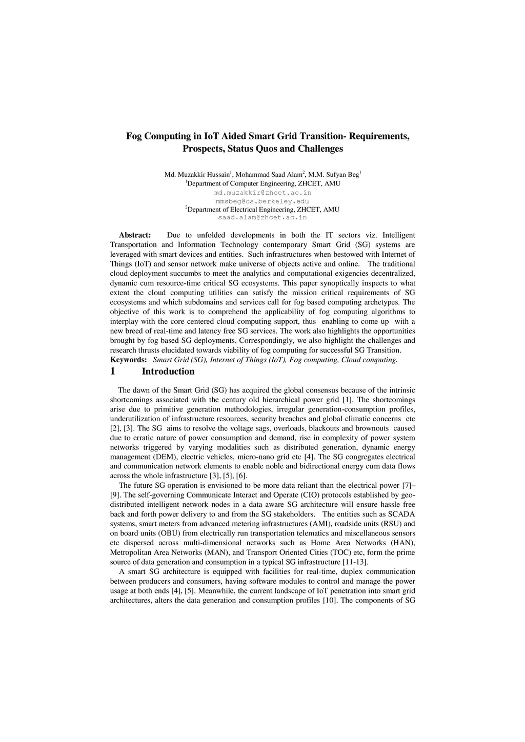 Fog Computing in IoT Aided Smart Grid Transition- Requirements,