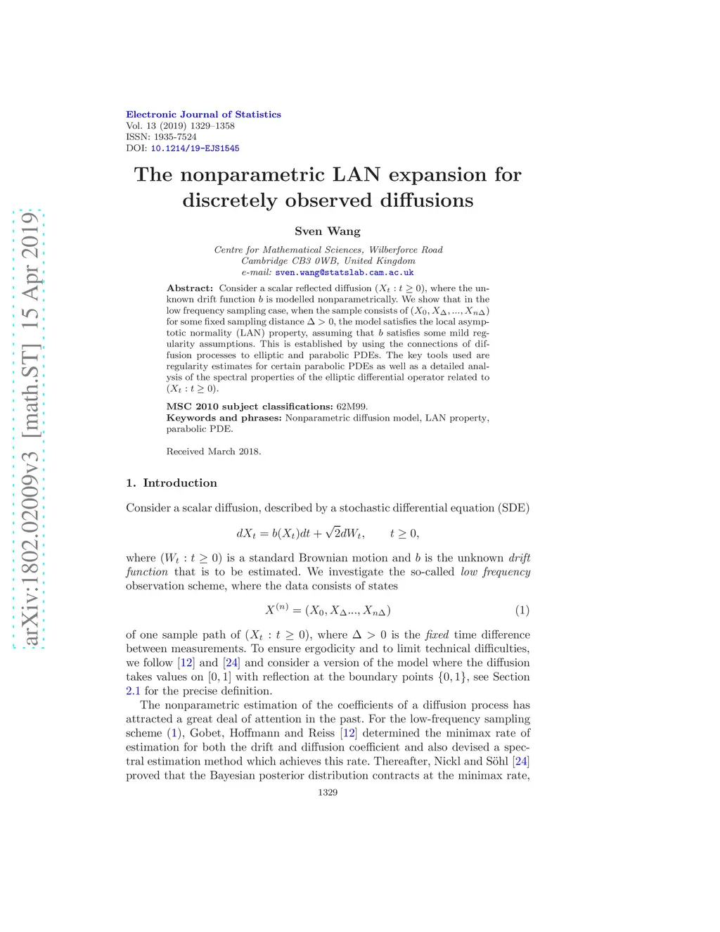 Consider a scalar reflected diffusion , where the unknown drift function is modelled nonparametrically. We show that in the low frequency sampling case, when the sample consists of for some fixed sampling distance , the model satisfies the local asymptotic normality (LAN) property, assuming that satisfies some mild regularity assumptions. This is established by using the connections of diffusion processes to elliptic and parabolic PDEs. The key tools will be regularity estimates from the theory of parabolic PDEs as well as a detailed analysis of the spectral properties of the elliptic differential operator related to .