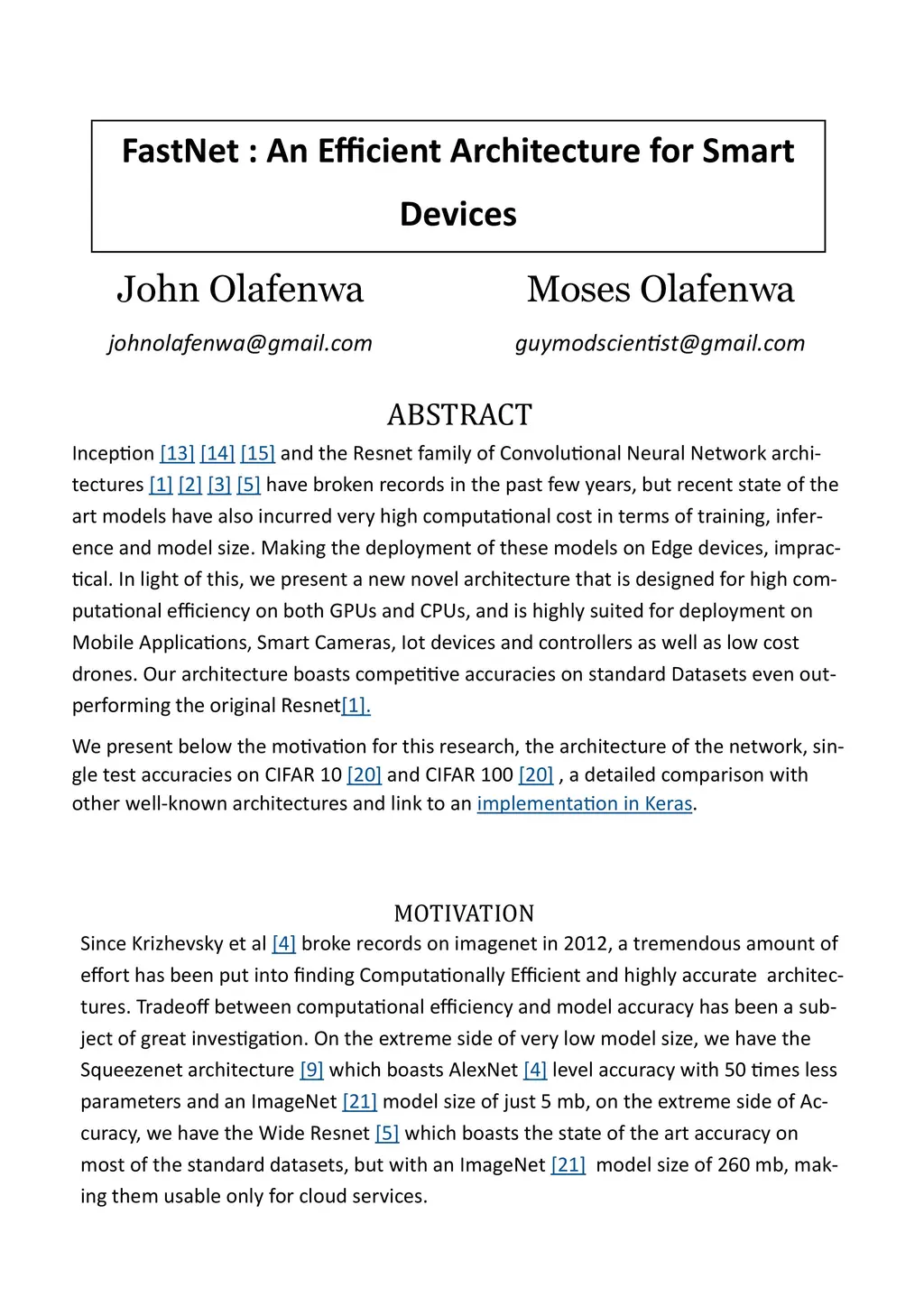 Inception and the Resnet family of Convolutional Neural Network archi-tectures have broken records in the past few years, but recent state of the art models have also incurred very high computational cost in terms of training, inference and model size. Making the deployment of these models on Edge devices, impractical. In light of this, we present a new novel architecture that is designed for high computational efficiency on both GPUs and CPUs, and is highly suited for deployment on Mobile Applications, Smart Cameras, Iot devices and controllers as well as low cost drones. Our architecture boasts competitive accuracies on standard Datasets even out-performing the original Resnet. We present below the motivation for this research, the architecture of the network, single test accuracies on CIFAR 10 and CIFAR 100 , a detailed comparison with other well-known architectures and link to an implementation in Keras.
