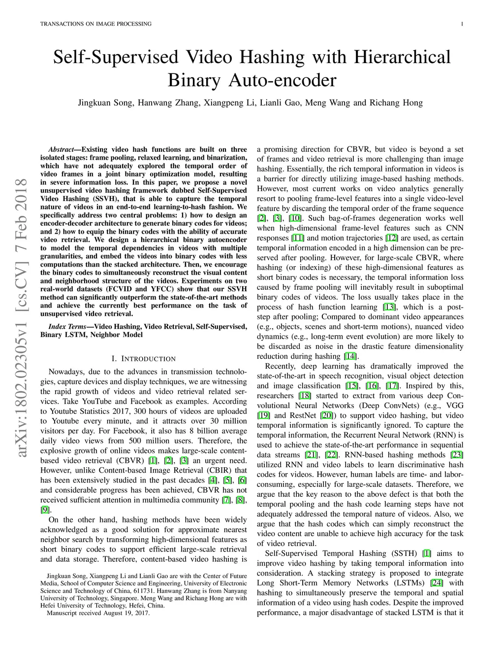 Self-Supervised Video Hashing with Hierarchical Binary Auto-encoder