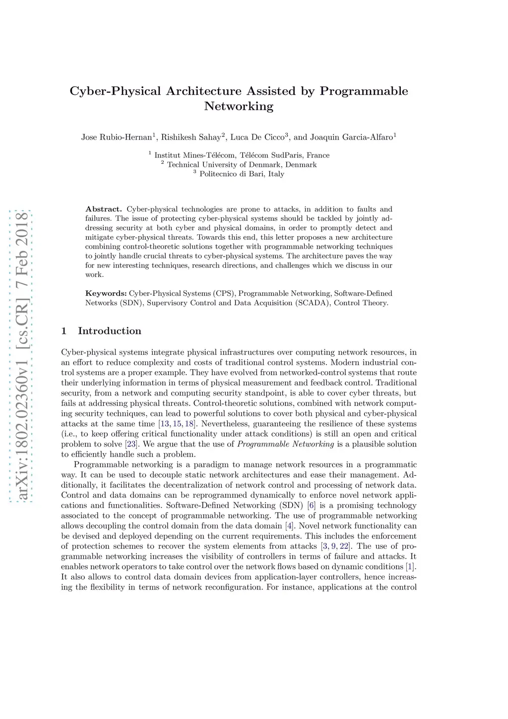 Cyber-Physical Architecture Assisted by Programmable Networking
