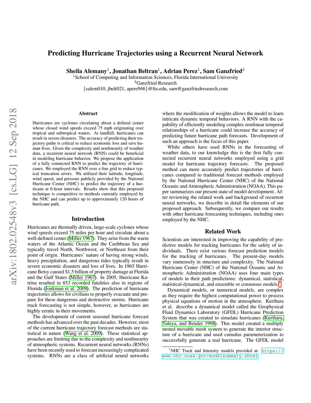 Predicting Hurricane Trajectories using a Recurrent Neural Network