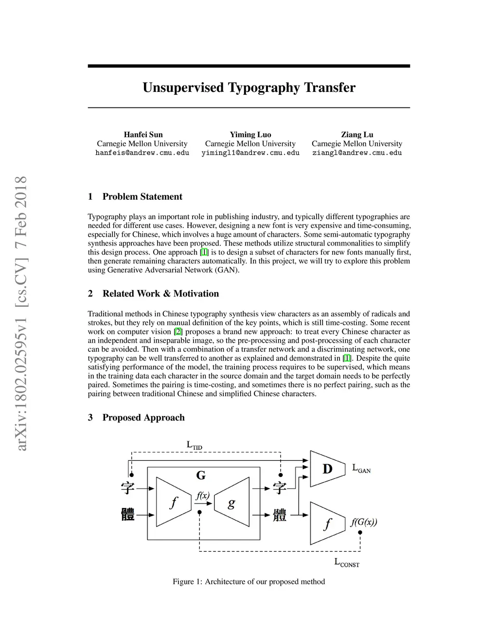 Traditional methods in Chinese typography synthesis view characters as an assembly of radicals and strokes, but they rely on manual definition of the key points, which is still time-costing. Some recent work on computer vision proposes a brand new approach: to treat every Chinese character as an independent and inseparable image, so the pre-processing and post-processing of each character can be avoided. Then with a combination of a transfer network and a discriminating network, one typography can be well transferred to another. Despite the quite satisfying performance of the model, the training process requires to be supervised, which means in the training data each character in the source domain and the target domain needs to be perfectly paired. Sometimes the pairing is time-costing, and sometimes there is no perfect pairing, such as the pairing between traditional Chinese and simplified Chinese characters. In this paper, we proposed an unsupervised typography transfer method which doesn't need pairing.