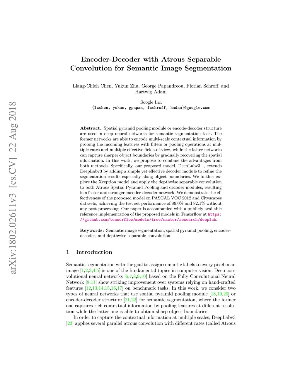 Encoder-Decoder with Atrous Separable Convolution for Semantic Image