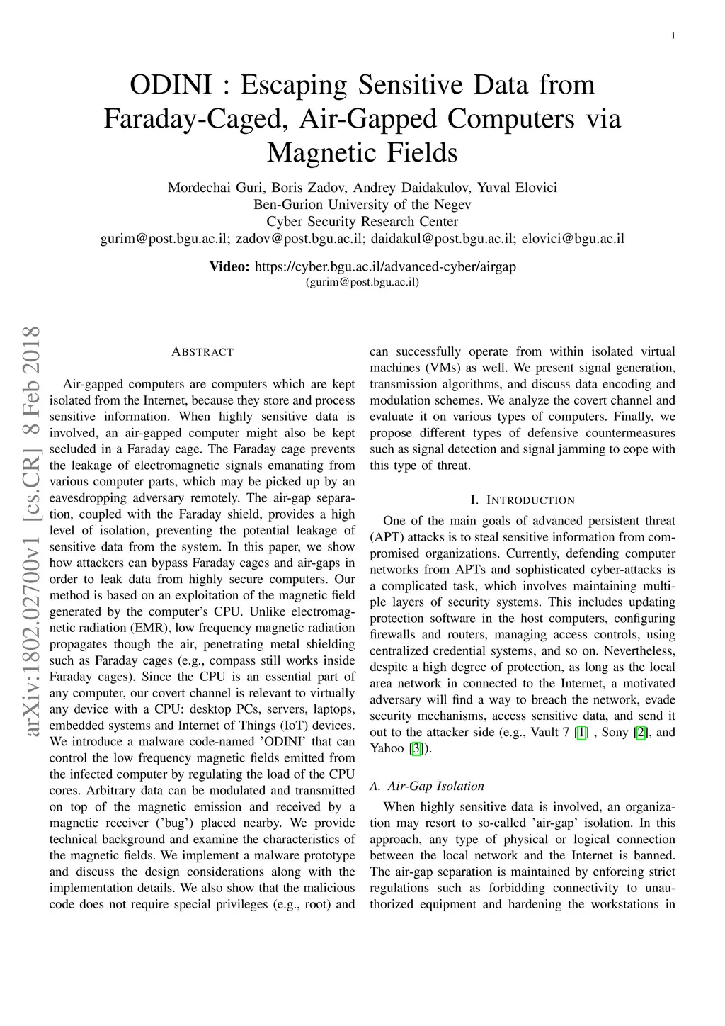 ODINI : Escaping Sensitive Data from Faraday-Caged, Air-Gapped Computers