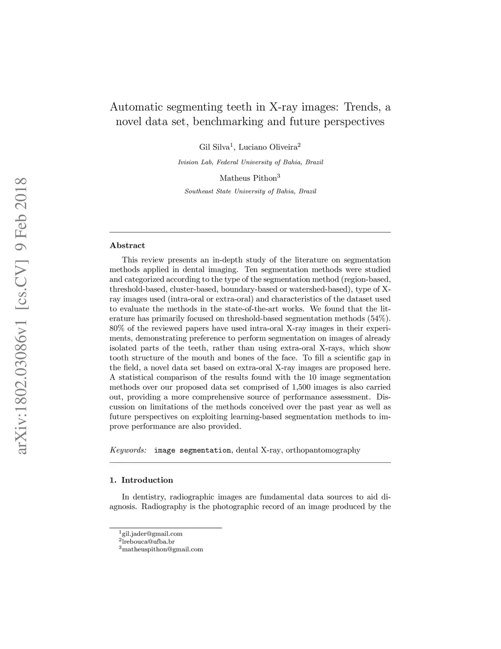 Automatic segmenting teeth in X-ray images: Trends, a novel data set,